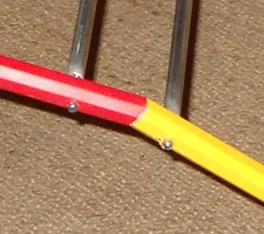 Pero los diámetros fueron muy diferentes. Así que lo solucioné utilizando un bastón ornamental secando que reclama del jardín de mi esposa, obligando así a las piezas a ser concéntricos. Luego perforar agujeros a través de los dos tubos y utilizar remaches para fijarla firmemente.