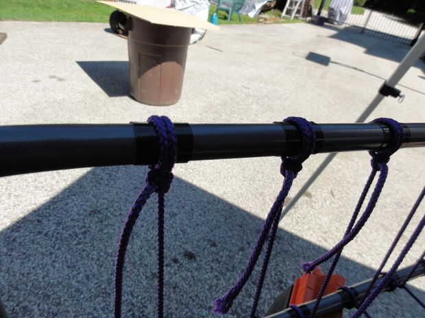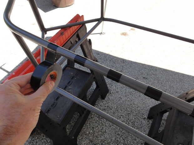 Antes de atar el cordón sobre el armazón, quería añadir algo a la estructura en los puntos de conexión de cable para ayudar a mantener la cuerda de deslizamiento y roce la pintura del marco.