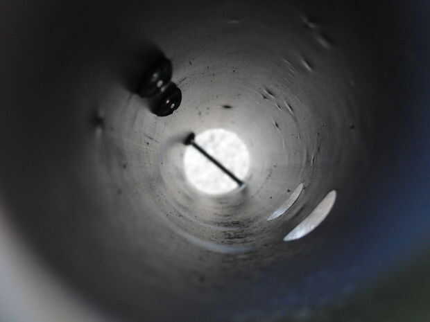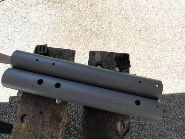 Un tornillo de máquina de 2 1/2"(a través de perno) fue utilizado en el agujero inferior para actuar como tope para las varillas u otros elementos colocados en los soportes de la barra.