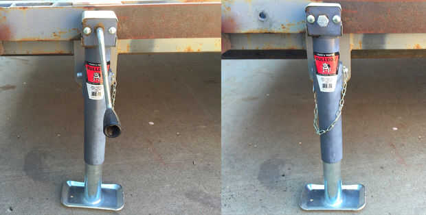 Hace un rato, decidí cambiar los estabilizadores estabilizadores/carga en la parte trasera de un remolque de tandem de plana de 20' desde el diseño original para un gato de remolque estándar.