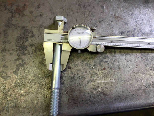 Después de medir la manija que salió de la toma inmediatamente se hizo evidente que sería mucho más fácil utilizar del estante estándar 1/2" grado 5 tornillo. No habría ninguna fabricación de gran magnitud a partir de este punto en para llevar a cabo lo que iba después. El perno que elegí fue 5.5" de largo.