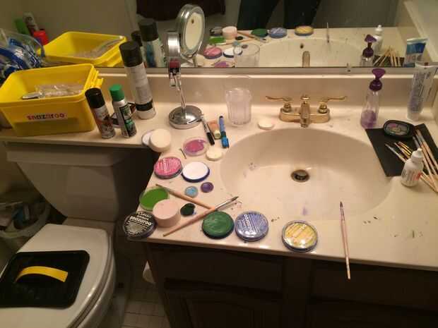 He desarrollado una colección de pintura de la cara en los últimos cuatro años de Halloweens! Me gusta usar pinturas a base de agua porque son fáciles de usar, mix y lavado apagado-nadie quiere tener a demuestran para arriba en el trabajo al día siguiente en su traje de la noche anterior!