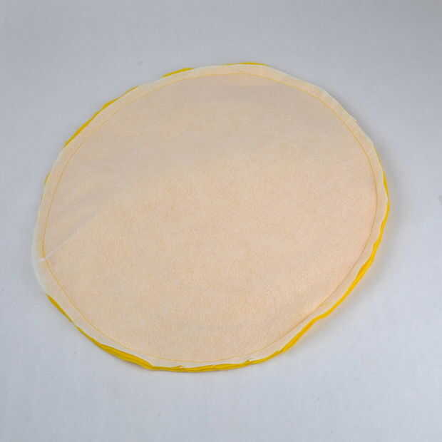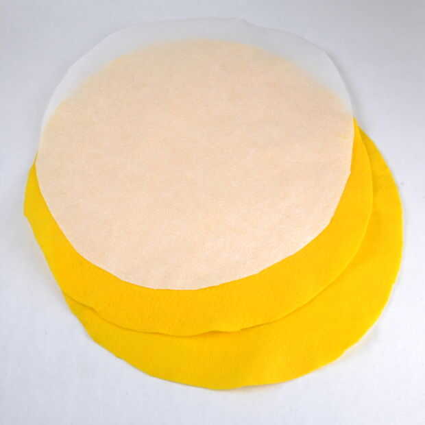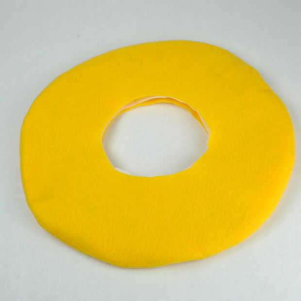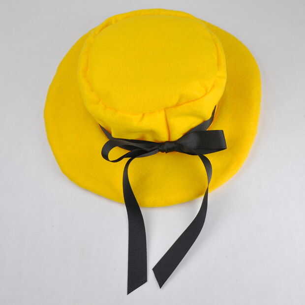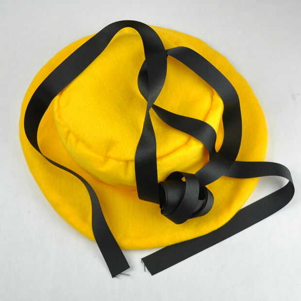 Luego corté dos piezas de fieltro para el borde y 1 pieza de entretela. Cosí las tres junto con la entretela en la parte exterior por lo que podría dar vuelta su lado derecho hacia fuera. Entonces sólo cortar el centro y mantienen el corte hasta la corona del sombrero cabrían en él. Que coser la parte superior del sombrero hasta el borde y después sólo atado en un poco de cinta.