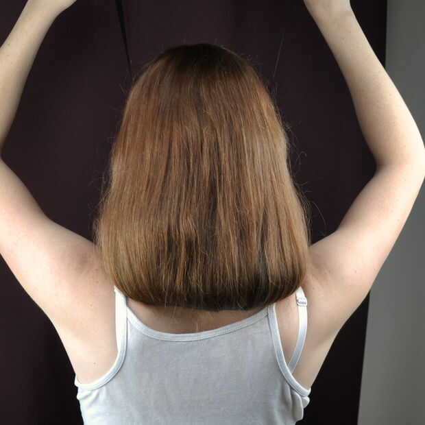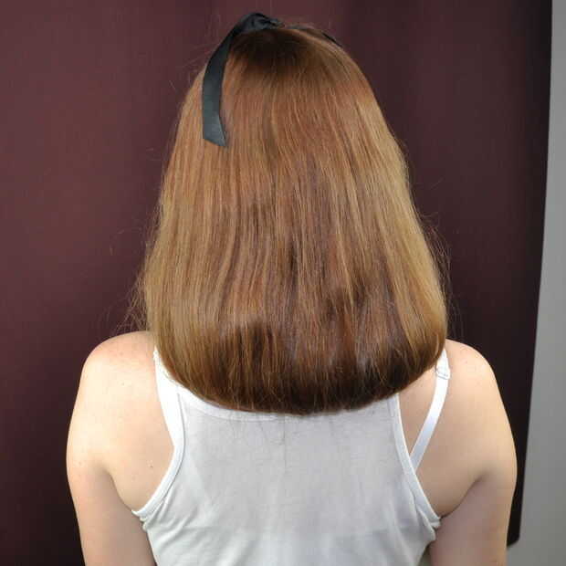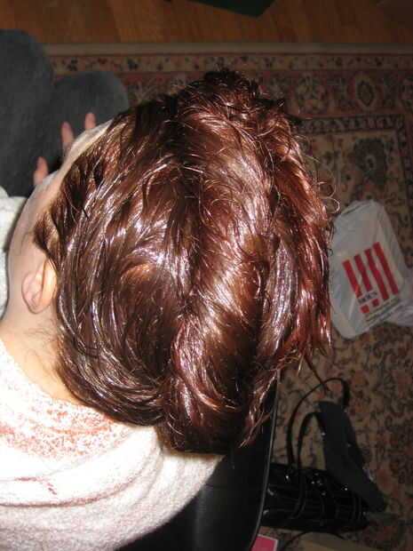 Teñido mi cabello ya que no he hecho en años y pensé que esto era una buena excusa para hacerlo. Yo usaba Revlon 42, castaño medio. Solía teñir mi pelo este mismo color en high School secundaria y la Universidad así que sabía cómo se vería y el tinte es realmente barato. Tuve que usar dos cajas para obtener de mi cabello.