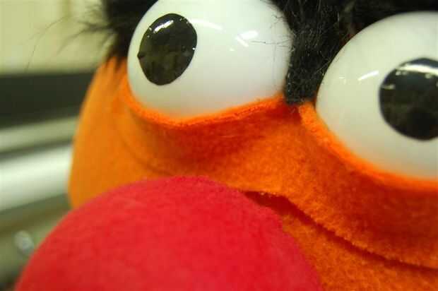 Los ojos son simplemente claros ornamentos de la Navidad por la mitad y aerosol pintado blanco. Fijar con pegamento caliente y usar alguna lana de desecho para hacer un párpado inferior del ojo. La piel del faux hace una gran ceja, y algunos extra negro fieltro círculos para los alumnos.
