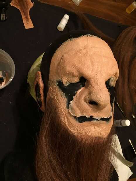 Después de terminar la barba, necesitaba personalizar al hombre-lobo prótesis que compré de creaciones de Nimba. Lo necesitaba para ir más lejos hasta mi frente y también quería cubrir con el látex y más piel como la textura más por punteado el látex en la mirada.