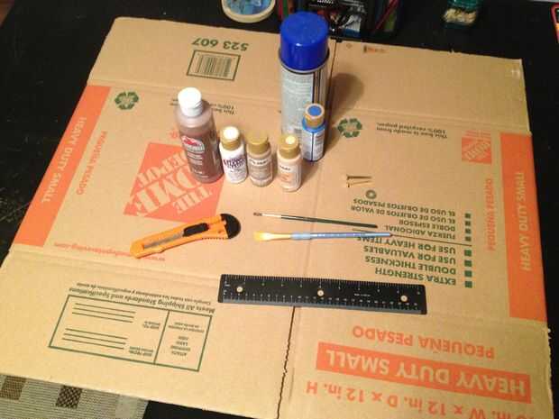5. herramientas - pinceles, corte de caja, pistola de pegamento (o botella de pegamento)