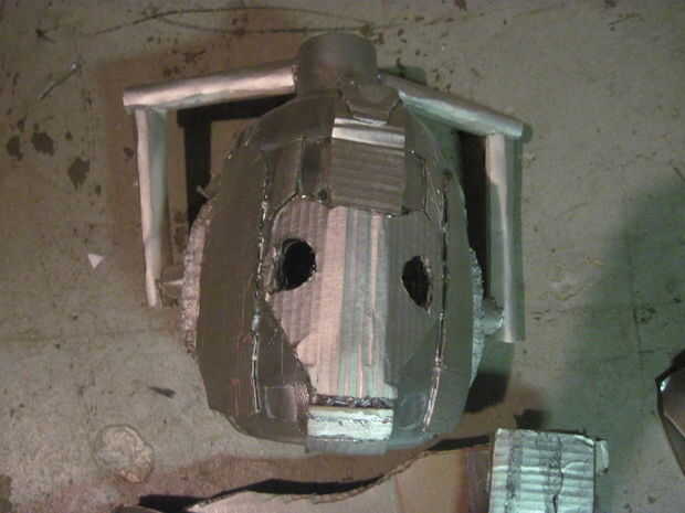 La parte de atrás es parte de un jarro de leche con algún tablero de Velcro y cartel para terminar la cúpula.