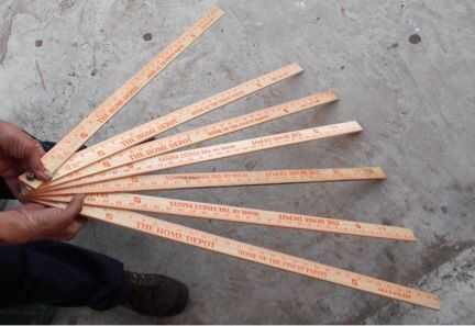 1. Usando una baliza de borde recto (como una de las muchas reglas que tienes ahí) una "X" dentro del primer 1" marca en los palillos de la yarda.