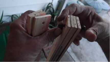 2. Perfore un agujero en el centro de la "X" en todos los 7 palillos.