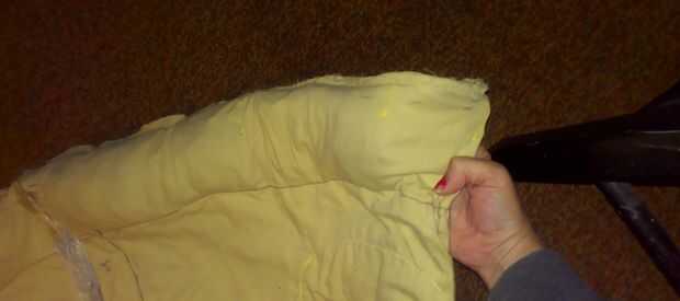 5. Desarmar de nuevo y guardar los palos y hardware al lado (porque es difícil de coser con los palillos dentro).