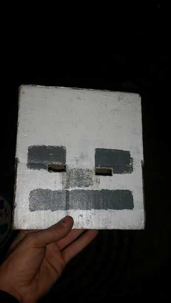 el casco de calavera es tan fácil agregar hacer una caja cuadrada y corte las aberturas para los ojos, luego la pintura. También hicimos una antorcha y un arco. se agregarán los siguientes! Gracias por leerme