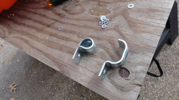 A continuación utilicé algunas abrazaderas de cable de servicio eléctrico que yo tenía por ahí para suspender las ayudas.