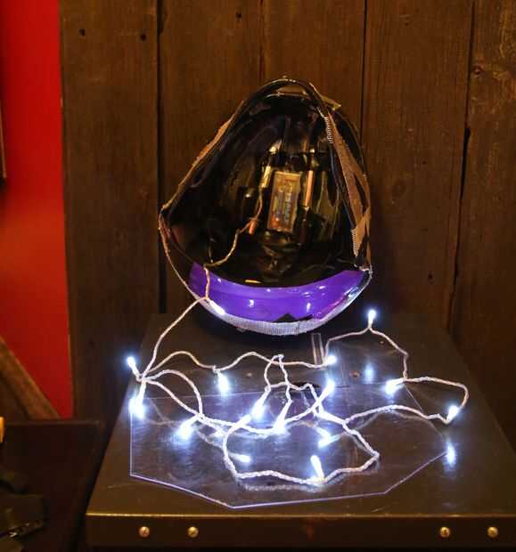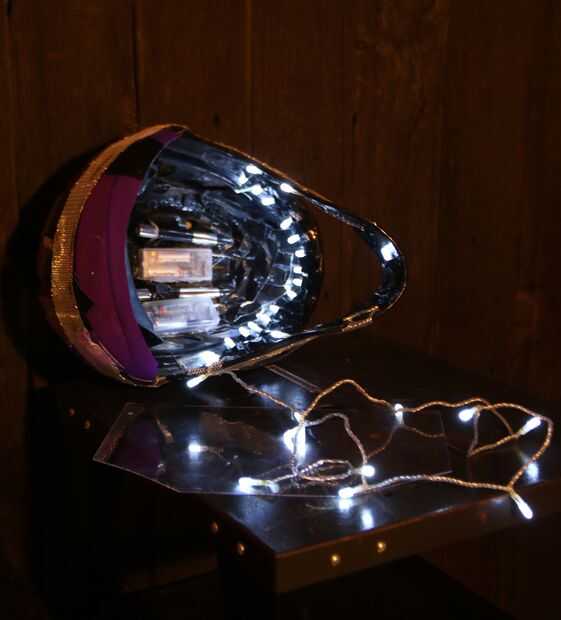 Ahora es momento de construir la parte más emocionante del casco creando el efecto de halo LED. Por grabar el compartimento en la parte superior del casco y tendido a lo largo del interior del casco alrededor de la abertura de la mascarilla, puedes empezar a ver cómo el efecto de iluminación a la vida.