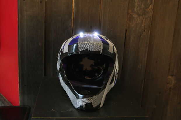 Ahora es un buen momento para tus bolígrafos LED en lugar de cinta. Esta parte era bastante simple ya que el casco del receptor original ya tenía dos pequeños orificios perforados simétricamente por la parte superior.