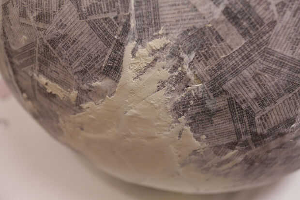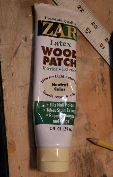 Otra vez, con guantes, exprimió la masilla para madera del tubo y alisado en las grietas. Tomó cerca de dos horas para secar.