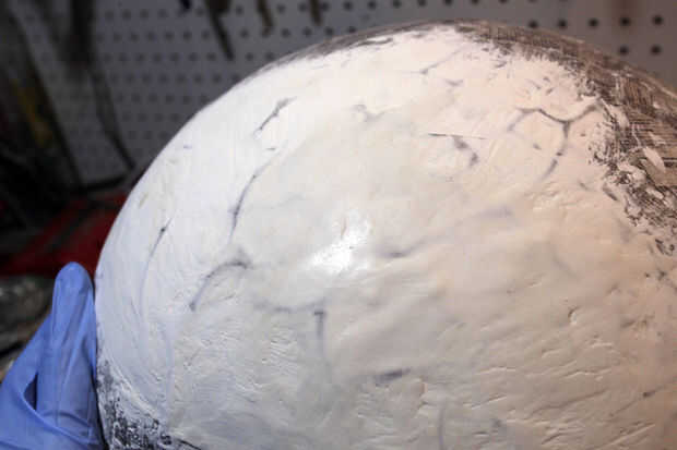 Luego lijar nuevamente el casco todo con papel de grano arena 150.