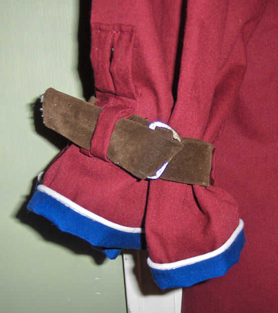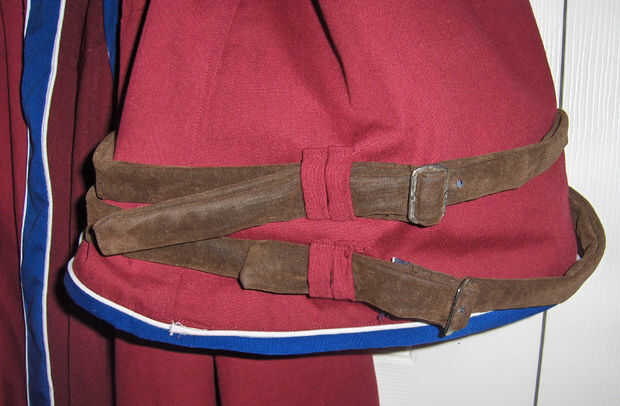 Las correas que están en los brazos son de gamuza y utilizan las hebillas ligeras. Los cinturones fueron hechos después de que la capa se completó, el brazo izquierdo tiene las dos correas más largas y el derecho tiene una correa corta en él por lo que el manga puede ceñida por lo que se aprecia el bracer y protector.
