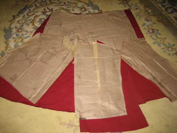 Usé el *** patrón. Era pesadamente modificado, la capa se alargó, las mangas se hicieron más grandes, el cuello fue tirado hacia abajo para ejecutar directamente, una franja azul y la tubería fue agregado al patrón así.