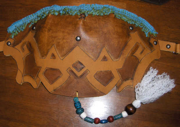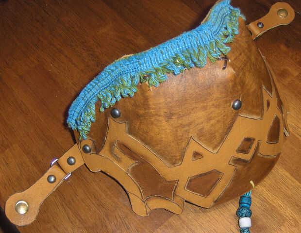 Después se hizo la parte principal de la guardia que tuve que idear una manera de colocar el protector a la capa. He utilizado el cemento de contacto para el cuero y cortar algunos parches de cuero, estos serán los dos parches de cuero extra lágrima en forma de, por lo que sería capaz sujetar anillos cuadrados. Para el otro cuero 4 lágrima en forma de parches que colgaba fuera de la capa utilicé broches así que pude eliminarlos cuando quería (hará 4 unos total con broches de presión. Recomiendo usando un broche muy muy resistente más resistente después que usé. Para conseguir los broches de presión a través del protector de hombro de cuero que tuve que usar una herramienta Dremel y y talla de madera poco afeitado apagado de la piel para conseguir los dientes en los broches de presión para ir todos a través de.