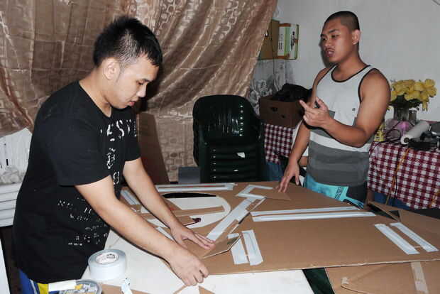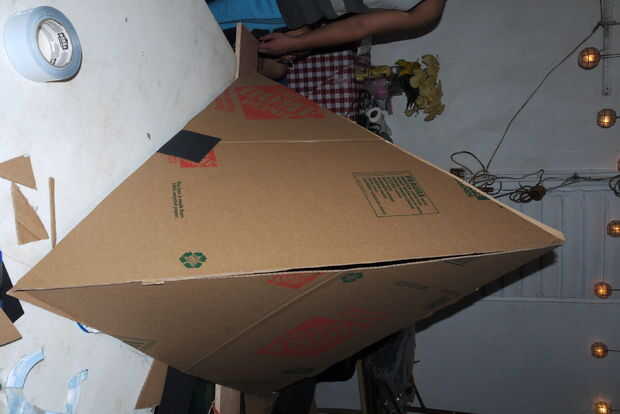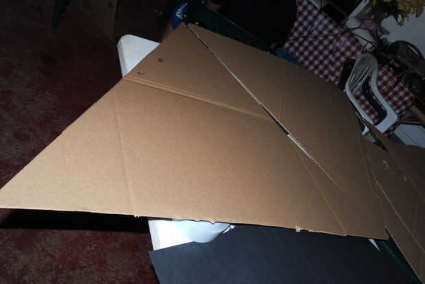 Una vez que tengas la pieza inferior establecido; Coloque en el suelo o sobre una mesa, usted será capaz de armar las piezas restantes y tendrás un triángulo tetraédrico. Bastante simple y debe tomar menos de una hora para completar. Utilizamos el conducto de cinta a cinta los bordes de las piezas juntos.