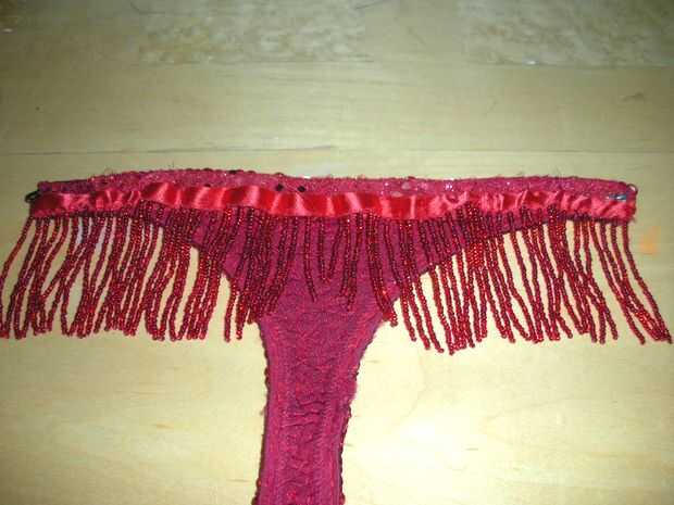 Un poco más difícil de grano como son normalmente hecho de tela strechy así es más fácil al grano si estire sobre un aro de bordar, como puede ser que necesite para los abalorios que se estirará en la tela cuando. Dos ganchos y ojos o sujetadores de la falda en los lados ayudan con esto también y con la toma, si lleva encima una tanga para una actuación o acto.