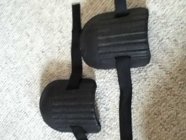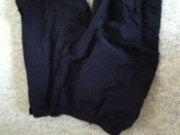 Los pantalones son pantalones deportivos solo negros que compré en una tienda de segunda mano, con rodilleras