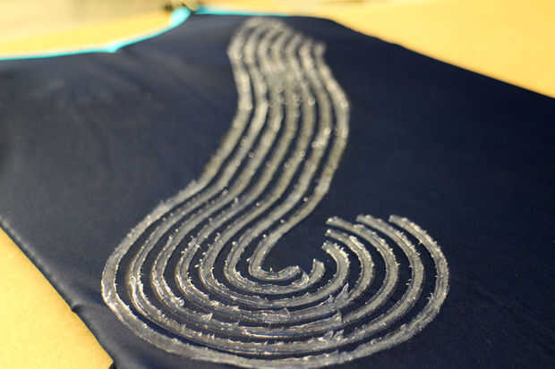 En esta aplicación he dejado una parte demasiado y la silicona se rasgó en un extremo del diseño. No gran cosa, pero en el futuro utilizar una plantilla mucho más pequeños y trabajar en secciones.