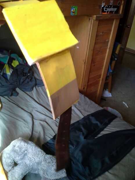 esto fue divertido y entretenido y sólo tomó una 4 hrs bueno para hacer. primero hice la correa de la hebilla de la izquierda sobre el aluminio de mi R2-D2. luego un grabado el símbolo del murciélago en él con mi nuevo grabado dremel broca. Entonces tomé una tira grande de cuero (ligeramente más pequeño que la hebilla) y había añadido cuadrados de cartón pluma. Luego pintado con pintura amarillo diente de León a mano. Los tubos que ves son pronto agregarse a la correa para sostener pequeñas bolitas de humo (me voy a poner el fuego pequeño cracker cositas en ellos para asustar a la gente). GRABADO una correa regular al interior de la tira de cuero al cierre en la espalda que está escondido por el cabo.