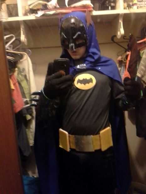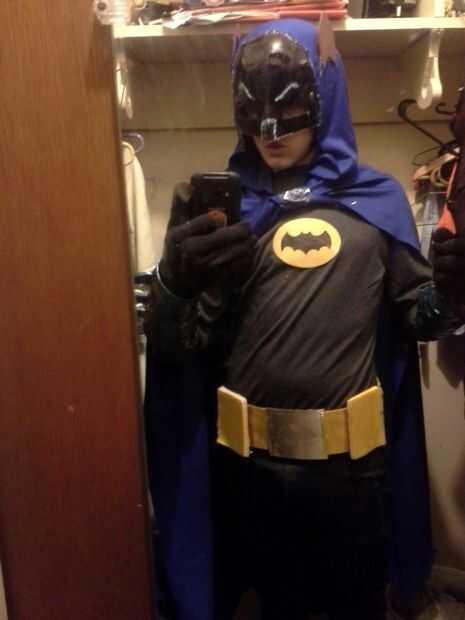 Hey voy a mostrar un traje de batman cojo y dorky podría como tu hijo.materialescinturón de utilidad de Walmart 6.00$Batman camiseta 9.00$ a blancouna manta negra o azulahora lucha contra el crimen como el cruzado de la capa real