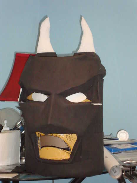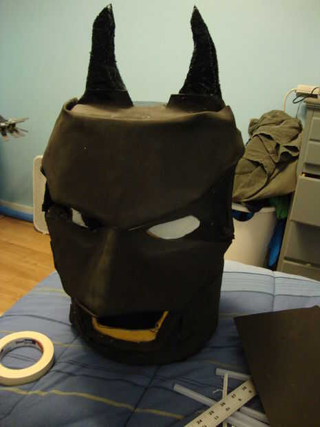 Con núcleo de espuma he creado formas para hacer de Lego Batman cabeza 3D. Desde Lego Batman lleva una capucha, tuve que crear la ilusión había una cabeza interior con la chimenea en la parte superior. Para hacerlo utilicé núcleo de espuma de construcción de las áreas.
