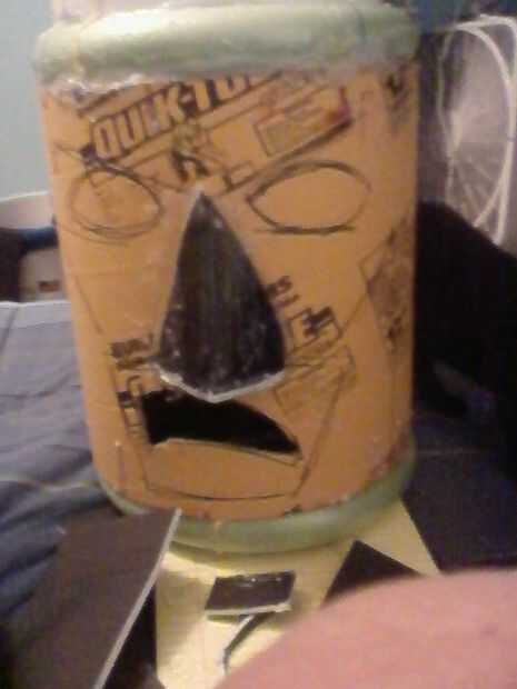 Usé el tablero de la espuma blanca para hacer los ojos y luego más tarde recortar hojas de espuma blanca para crear una apariencia de ojo blanco muy brillante. Usando una pintura acrílica de color carne pintó el área de la boca.