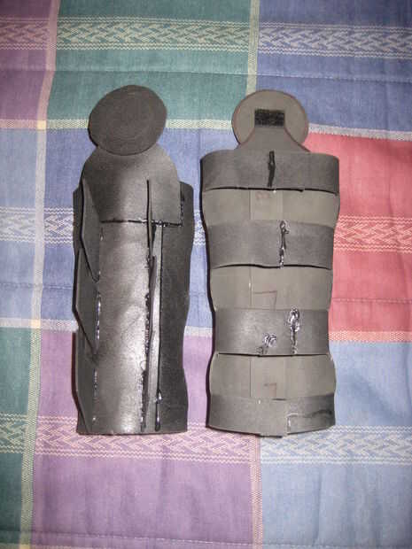Los guantes son sólo guantes de mecánico que compré por $8. Los guantes estaban hechas de espuma del arte, las correas del Velcro y el Nylon. El diseño de los guanteletes realmente depende de la mirada que usted va para.