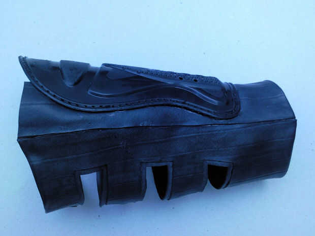 Después de todo lo que ha hecho su tiempo a spray, estoy usando un negro aerosol satinado que es flexible por lo tanto no crack sobre la goma, he conseguido de HobbyCraft pero puedes conseguirlo en cualquier arte o tienda de bricolaje.