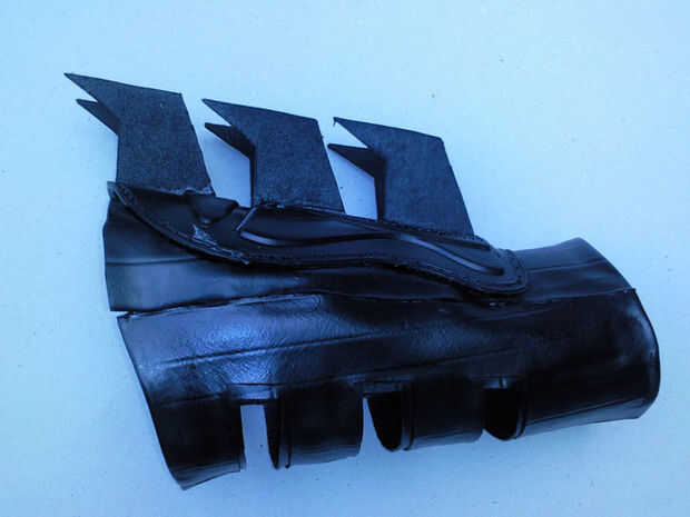 En este momento tengo un par de canilleras que eran negros pero el tuyo no tiene que ser porque puede pulverizar más tarde. Había enarenado apagado todos los logos y me alisó el área con papel mojado y seco. A continuación, poner las piezas del brazo sobre mis brazos y mide la distancia en la parte superior de la corte anteriores entonces agregan 1cm a él, tenía espacio para usar algo debajo de las piezas del brazo. Luego colocar pegamento en los bordes de la almohadilla de shin en el interior y colocarla sobre las piezas del brazo asegurándose de dejar el espacio en el extremo cortado.