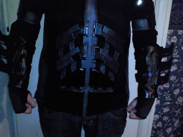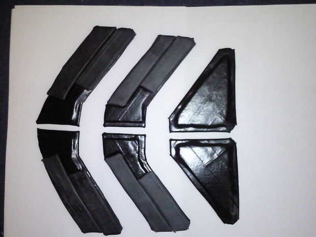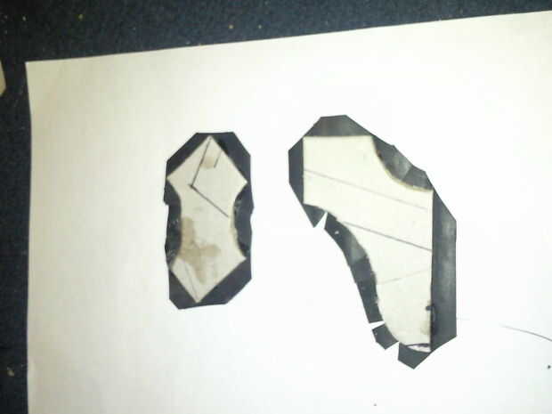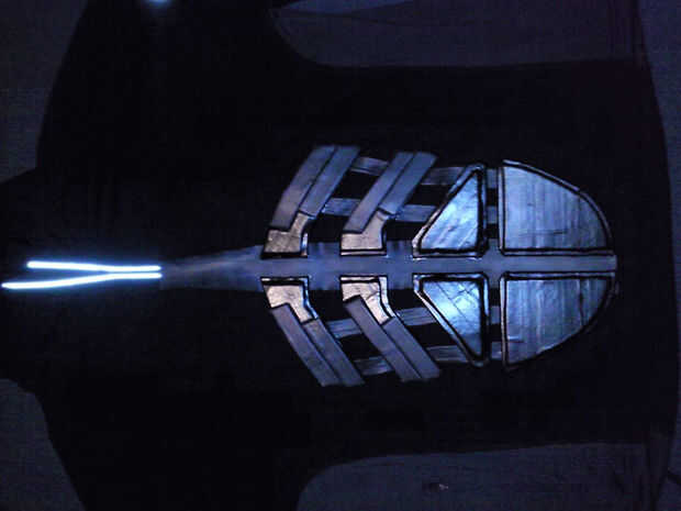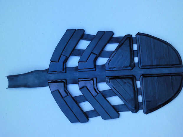 Después de todas las piezas han sido hechas y rociado su tiempo para poner a todos juntos, pone todas las piezas abajo exactamente donde necesita medir una pieza de tubo interno de 2 pulgadas de ancho y desde el fondo hasta la parte superior de la armadura piezas se dispuestos hacia fuera y dar un extra de 3 a 4 pulgadas en la parte superior. Cortar unas tiras de una pulgada de ancho y pegamento a la parte posterior de las piezas de armadura espaciados aproximadamente 1-1.5 pulgadas de distancia.