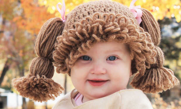 No sé cómo al crochet. Así que compré mis. Este es un sombrero que se ve como remiendo de la col inspirado pelo de la muñeca. Compré este sombrero particular de TheLillePad tienda en etsy.com.
