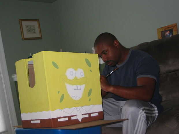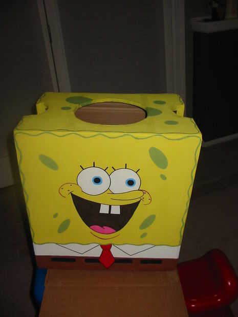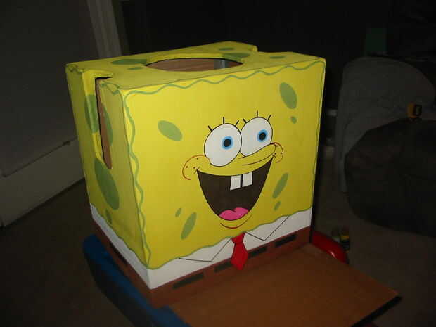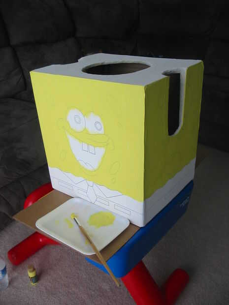 Este año mis sobrinas pidió un pinata de Spongebob Squarepants. El reto es hacer la forma rectangular usando papel maiche. Si usas cartulina como base para la piñata, bien puede ser demasiado difícil de romper, sobre todo entre los niños de edad pr