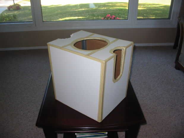 Disfraz hecho de cartón y papel maché.Paso 1: Materiales (materiales) -1 caja de cartón en la quepa el usuario (una caja de cartón que se adapta con el usuario)-cola blanca de carpintero (cola blanca)-papel de cocina (papel de cocina o papel maché)-p