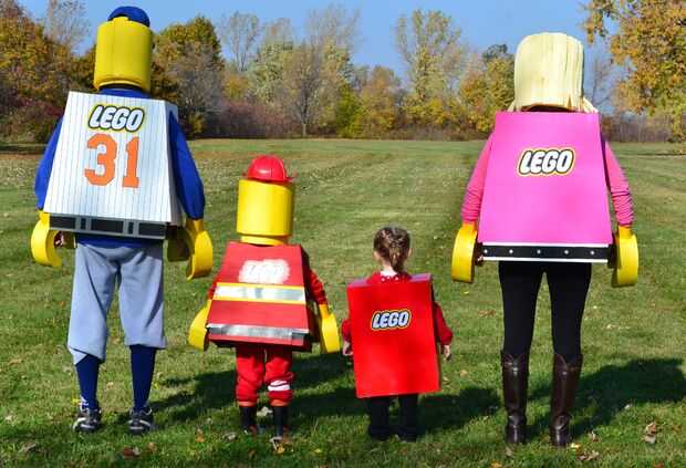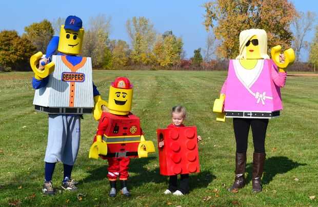 Mi hija no quería ninguna parte vestir un traje minifigura (y francamente, no creo que ella puede manejar uno en 3 años de edad), pero ella estaba a bordo con ser un ladrillo de Lego... así que azotaron su traje por una tarde, para acabar con nuestra familia de Lego!