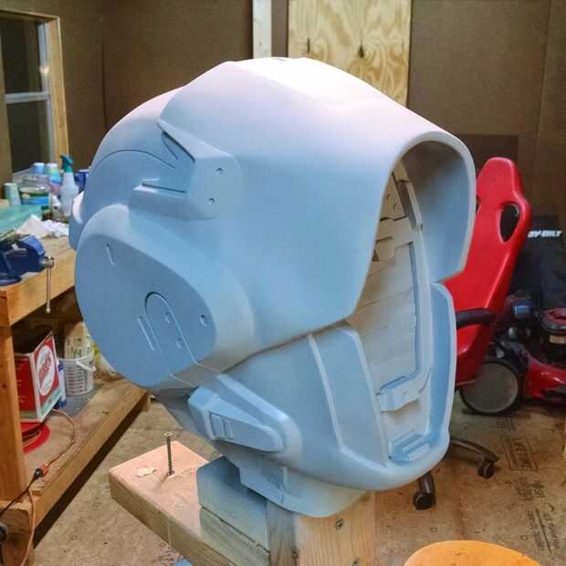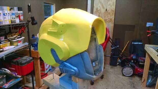 Finalmente se instaló una visera teñida para rellenar la abertura en la parte delantera del casco y permitir la visibilidad.