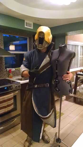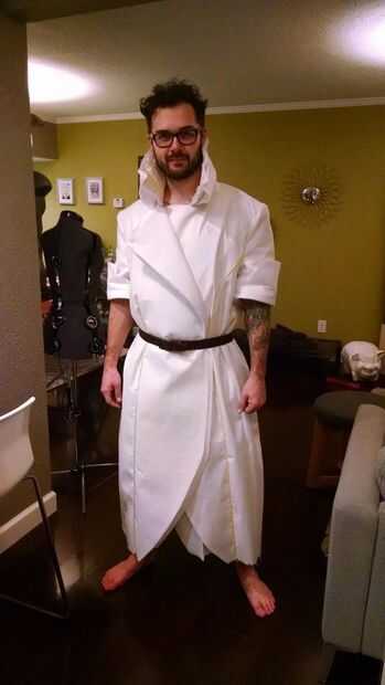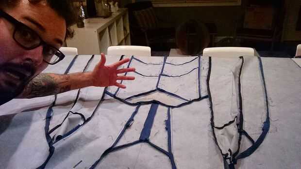 Había lavada de unos almacenes de tela y había recogido todas nuestras telas. Suerte, encontramos un tejido plata previamente acolchado y acolchado de la guarnición. Esto había guarda toneladas de trabajo. En este punto, tuvimos abundancia de práctica haciendo este patrón por lo que era más bien familiar que a la final. Una vez cosido juntos, snapps fueron agregados para el cierre y puntos de anclaje de la armadura. Se aplicaron parches que habíamos hecho, mi hebillas personalizadas fueron agregadas, y fue resistido por. Hice la intemperie con una mezcla de polvos y aerografía y arrastre alrededor de la planta. Que fue difícil para mí hacerlo, pero funcionó bastante bien.