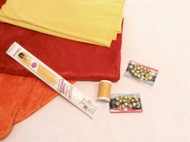 Para tamaño 10-12 de las mujeres, he utilizado 1 yarda de rojo, 1/2 yarda naranja y amarillo de 1 1/3 yardas de tela, cuesta cerca de $15 (US).