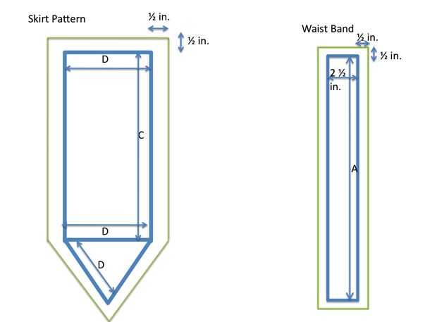 Para la venda de la cintura, hacer un rectángulo que es un pulgadas de largo por 2 1/2 pulgadas de ancho. Añadir una media pulgada alrededor de todo el camino para margen de costura. (ver tercera imagen)