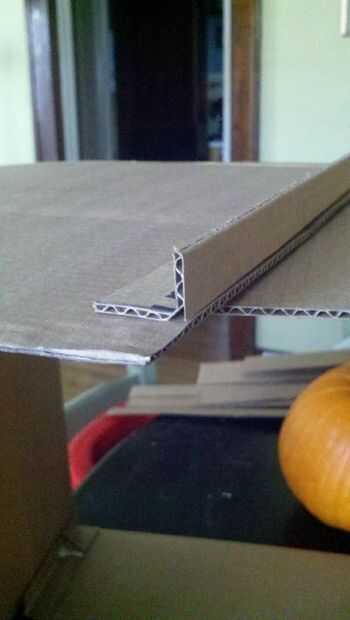 • A continuación, agregue un panel al otro lado de la tira de esquina. Para cada dos paneles pegados juntos, me adherí los triángulos de soporte de cartón para el acompañamiento dentro de rincones. Coloqué uno en ambos extremos y en el centro de la franja.