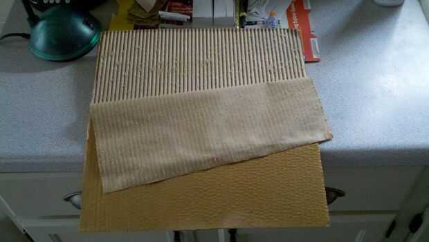 • Cuando se satura la capa superior lo suficiente puede ser pelado lejos del resto de la cartulina, dejando la capa corrugada expuesta. Algunas piezas se pelan mejor que otros que esta parte tedioso ya que puede tiene que recoger ausentes pequeños pedacitos de la capa superior que no retire.