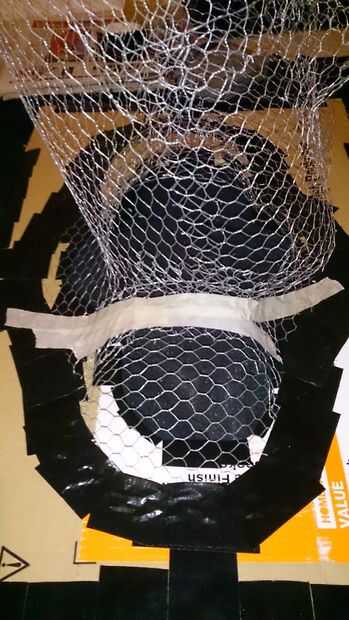 Por lo tanto, si no han adivinado aún, poco a poco estamos trabajando hacia ese método de escultura generalmente reservado para viveros (jardines de la infancia?), rehabilitación centros y centros de salud mentales; Papier-Maché. Sin embargo, al parecer pasta de papel empapado no gusta que se pega al alambre. O cinta adhesiva. O básicamente cualquier cosa que no sean las manos o la cara. Por este motivo puse sobre recubre el armazón de alambre con cinta de enmascarar, con la esperanza de que el puré de papel vea la cinta de papel y, sabes, quiero hacer amigos. Algo previsible, sin embargo, sólo tenía suficiente cinta adhesiva izquierda para cubrir aproximadamente un hombro. Tuve que pasar directamente a la frustrante papel lío, pero si alguien por ahí trata de esta construcción ("bondad, ¿por qué?") Recomendamos que cubrir todo en cinta por dos razones; el siguiente paso será mucho más fácil que he encontrado y no acabas con el alambre de pollo texturizado que lamentablemente tenía en la pieza final.