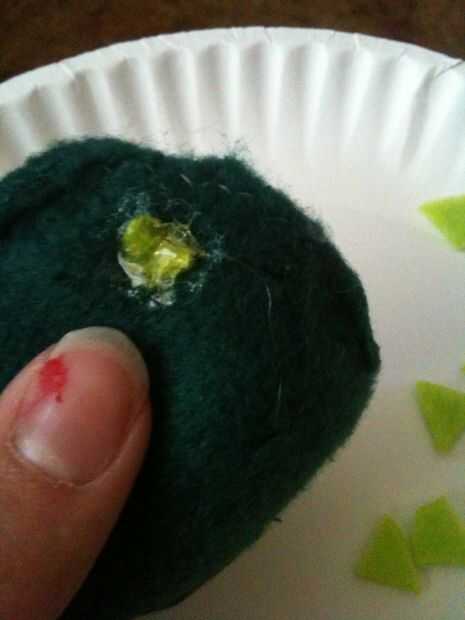 Tomar uno de sus triángulos y empujarlo sobre a medio camino a través de uno de los agujeros y asegure con pegamento.