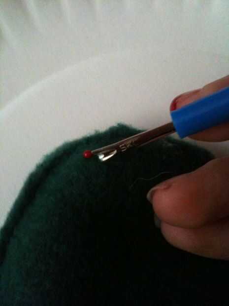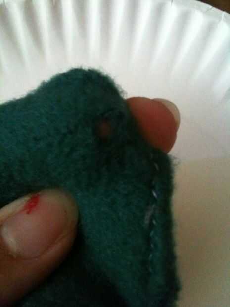 Asegurándose de que el arco está todavía adentro hacia fuera, utilizar al destripador de la costura para rasgar los pequeños agujeros a lo largo de él.