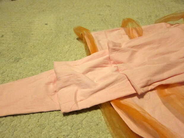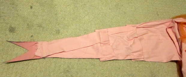 Poner algunos pliegues en la tela y coser en su lugar. La punta de la cola está hecha de trozos de espuma de la garra; Estos se pegan mas facil en, pero coser también funciona.
